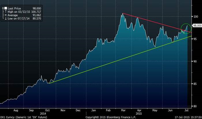 L’indice du dollar américain a brisé une formation en triangle cette semaine qui est positif