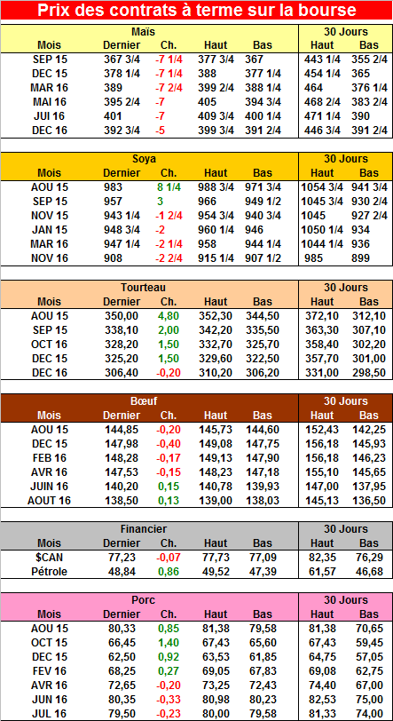 · Baisse de 0.8% de la production d’éthanol américaine la semaine dernière à 965,000 barils par jour.