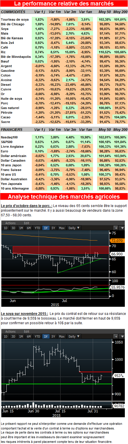 · Le prix de la découpe de porc monte de 0.55 cent à 89.12 cents. Nouveau haut pour le prix du bacon cette année.