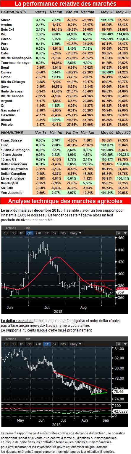 Concernant le rendement final, la moyenne des estimés est à 45.7 dans le soya et à 165 boisseaux à l’acre dans le maïs. Les inventaires de fin d’année risquent ainsi de baisser à 1.5 milliard de boisseaux. La question est de savoir qui va avoir raison…