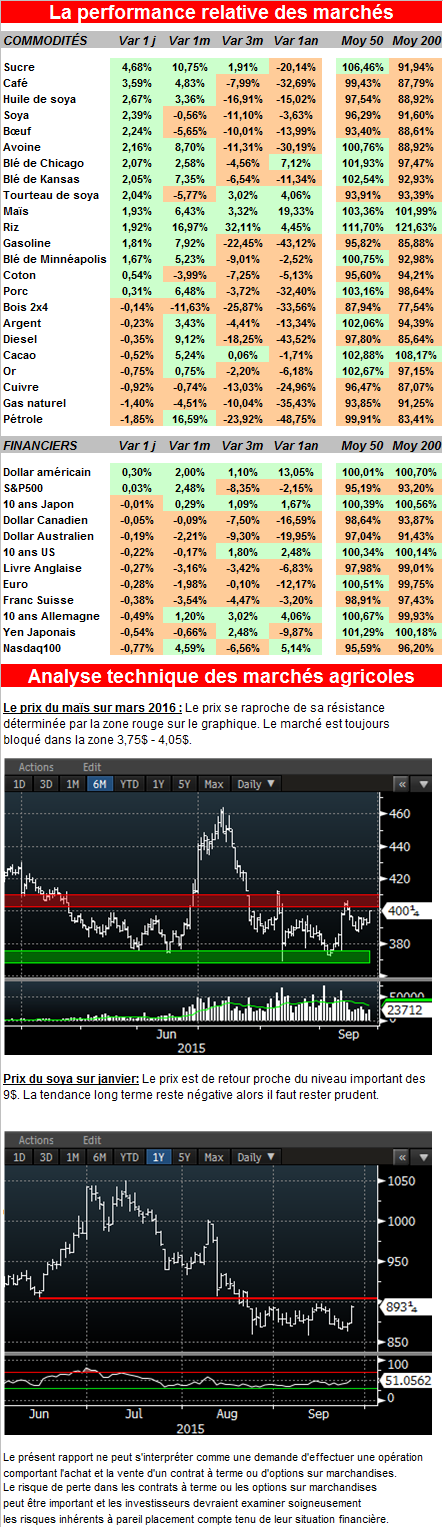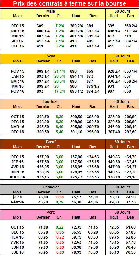 Selon Jerry Gidel, analyste en chef chez Rice Dairy LLC de Chicago, les bases dans le maïs ont remonté un peu cette semaine dans certains États-américains. Les fermiers vont vouloir entreposer le maximum de stock dans l’espoir d’avoir de meilleurs prix plus tard. Il annonce toujours du temps sec pour les 10 prochains jours en Ukraine et en Russie. Le prix du blé a ainsi remonté cette semaine de 20 cents du boisseau et risque de rester fort si le temps sec continue.