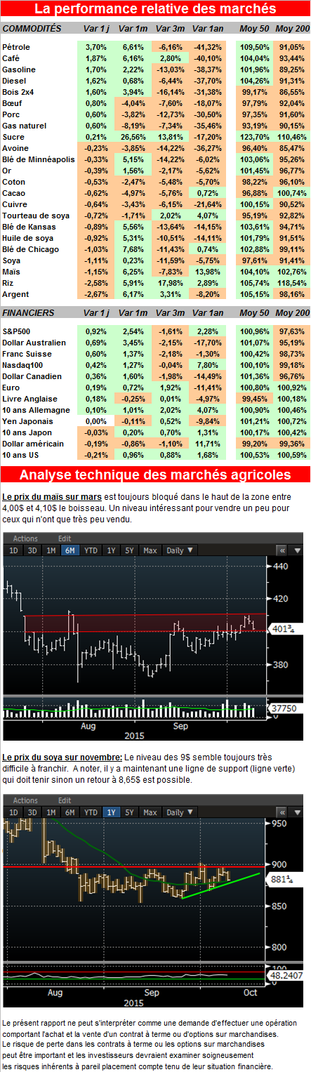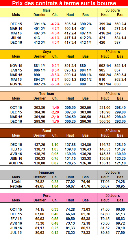 Inventaires estimés de 1.534 milliards de boisseaux dans le maïs et de 414 millions de boisseaux dans le soya