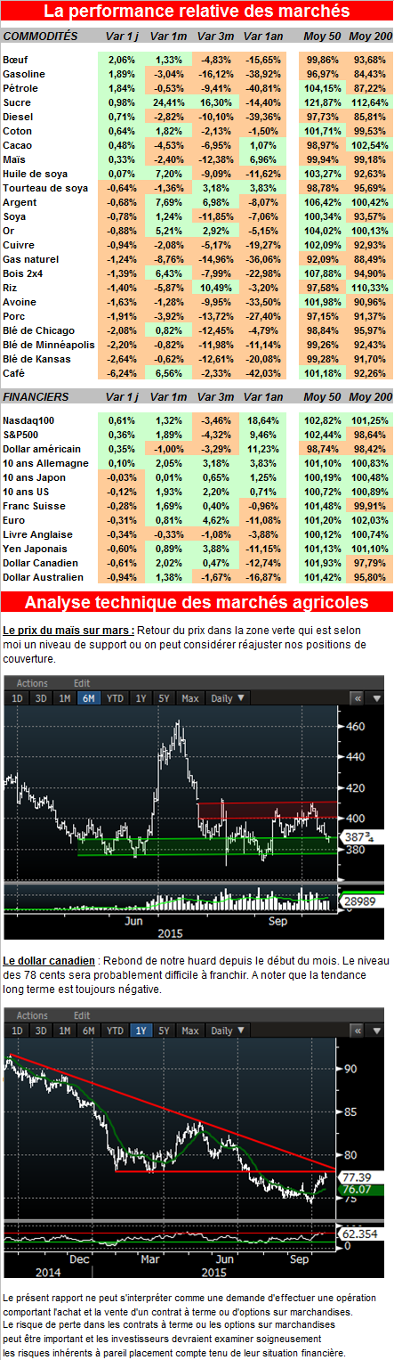 · Le bon rythme des récoltes aux États-Unis de maïs et soya exerce de la pression sur les prix.
