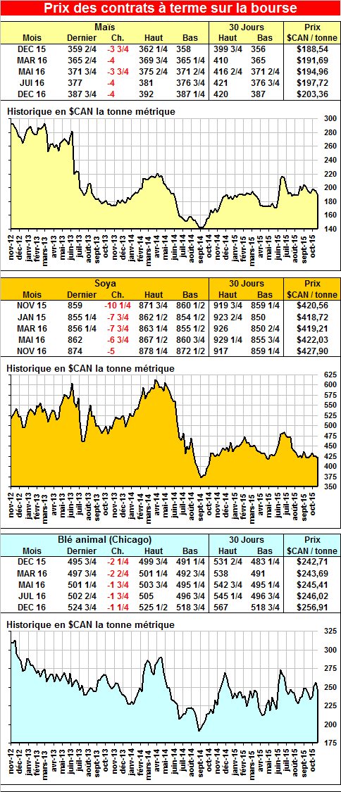 · Le prix du soya touche le niveau des 8.50$ pour la première fois depuis mars 2009. La température est presque parfaite en Amérique du Sud et cela exerce de la pression sur les prix.