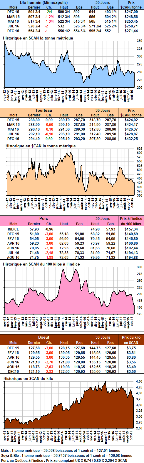 · Baisse de 3 cents des contrats sur le porc aujourd’hui sur des anticipations qu’il a possiblement trop de porcs sur le marché. La USDA avait estimé dans son dernier rapport que la production de porcs devrait être de 7.3% supérieure en livres cette année à l’année dernière et de 5.7% supérieure à 2013. Les ventes à l’exportation sont donc très importantes pour écouler le surplus de production. Le prix de la découpe avait pourtant monté de 1.33 cent aujourd’hui à 74.69 cents.