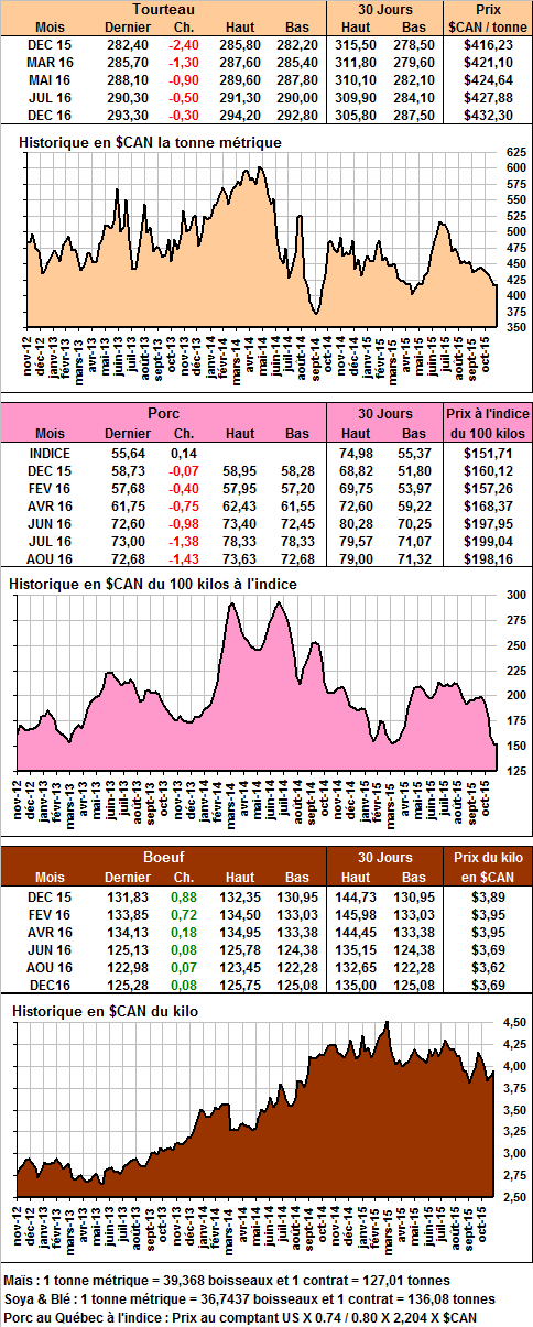 · Le prix de la découpe de porc a remonté de 0.68 cent aujourd’hui pour clôturer la semaine à 72.40 cents. Les marges d’abattages sont toujours très bonnes et le prix du comptant semble selon moi un peu trop bas.