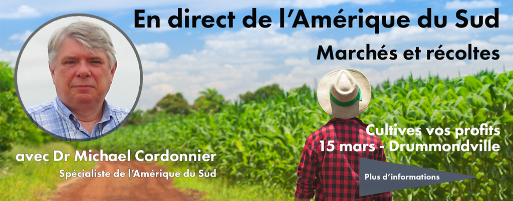 En général, je pense que la semaine dernière a été bonne pour le soya. On s’inquiète des problèmes potentiels à venir si les fortes pluies persistes, mais c’est pour le futur et pour l’instant, les choses vont bien. Il y a probablement quelques semis de soya qui ont déjà été récoltés, mais je n’ai pas encore vu un rapport de rendement.