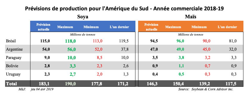 L’ANEC estime maintenant que le Brésil exportera 28 millions de tonnes de maïs en 2019, ce qui représente une baisse par rapport à son estimation du début de janvier de 31 millions de tonnes. Elle craint notamment que les taux de fret minimaux plus élevés au Brésil ne réduisent sa compétitivité sur le marché mondial.