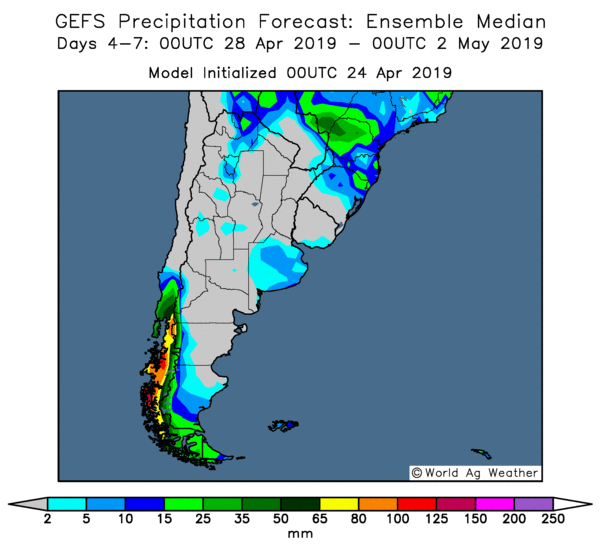 Les rendements de maïs continuent de dépasser les attentes et beaucoup d’entre eux excèdent 11,000 kg/hectare (169 bo./acre). Dans le centre-nord, le rendement moyen est un record à 11,000 kg/hectare (169,4 bo./acre). Les rendements de maïs au sud de l’Argentine ont également atteint des niveaux record. Ces deux régions sont les plus productives d’Argentine et, jusqu’à présent, elles représentent plus de 50 % du maïs récolté. Le Buenos Aires Grain Exchange a indiqué que le rendement de maïs était de 9,760 kg/hectare (150,3 bo./acre), ce qui représente une baisse de 0,9 bo./acre par rapport à la semaine précédente.
