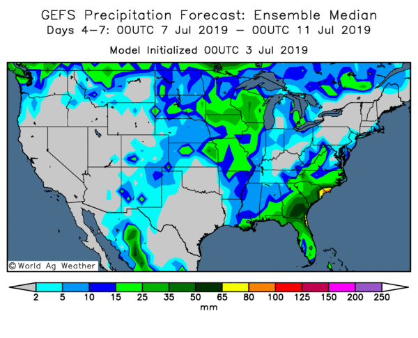 Dans son rapport de juin sur les ensemencements, le NASS (USDA) a indiqué que 80,0 millions d’acres de soya avaient été semés et que la superficie de soya avait diminué dans les 29 États concernés. L’agence américaine a déclaré : «Le 16 juin, 77 % de la superficie cultivée en soya avait été ensemencée et 55 % des semis avaient émergé, soit à 34 % de moins qu’à la même période l’an dernier et à 29 % de moins que la moyenne quinquennale». Il est donc clair que certains agriculteurs ont exprimé leurs intentions d’ensemencer du soya sans pour autant semer réellement la même quantité. À mon avis, je pense qu’ils ont sous-estimé la superficie plantée en soya.