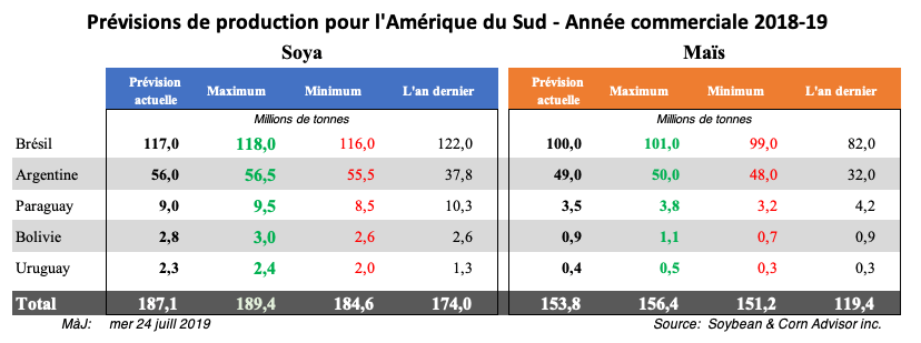 À la fin du mois de juillet, le Brésil devrait avoir exporté 54 millions de tonnes de soya et 8 à 9 millions de tonnes supplémentaires pourraient être exportées au cours du mois d’août prochain. Si tel est le cas, il ne restera alors qu’environ 8 millions de tonnes de soya pouvant être exportées entre septembre et janvier, lorsque la nouvelle récolte commencera à être disponible.