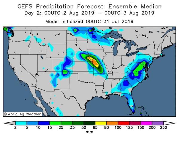 Il y a eu quelques averses légères au cours du week-end, mais les quantités les plus élevées se situaient généralement dans l’ouest et le nord-ouest du Corn Belt, alors que les quantités les plus légères se trouvaient dans l’est. Certains des États les plus secs se trouvent dans le centre et la partie orientale du Corn Belt, qui est également la région où le développement du soya a été le plus retardé.