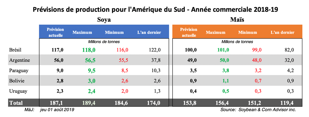 À court terme, le ministère brésilien estime à 120,6 millions de tonnes la production de soya 2019/2020 et les exportations de soya à 73 millions tonnes.