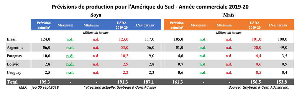 La superficie disponible pour le défrichage de nouvelles terres pour y planter du soya peut également être quelque peu limitée par les récents incendies dans la région amazonienne et par la couverture médiatique négative qui en a résulté. Bien que très peu de zones déboisées dans la région amazonienne soient utilisées pour la production des cultures, la publicité négative entourant le thème du défrichement rend les propriétaires fonciers réticents à défricher même les terres autorisées par le gouvernement.