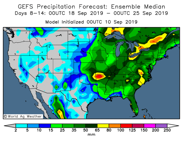 Après deux semaines d’amélioration de l’humidité du sol, il y a maintenant deux semaines de diminution de l’humidité du sol. Les prévisions annoncent une augmentation des précipitations dans les États du nord où il y a déjà suffisamment d’humidité dans le sol. Les prévisions annoncent une réduction des averses dans le centre et l’est du Corn Belt où un peu plus d’humidité au sol serait le bienvenue.