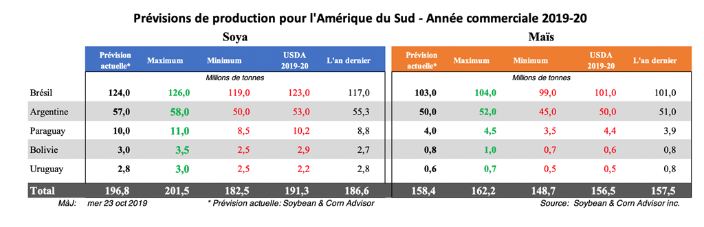 Les agriculteurs argentins viennent tout juste de commencer à semer leur soya 2019/2020. Il existe probablement quelques champs de soya ensemencés dans les principales zones de production où les agriculteurs ont achevé leurs semis de maïs, mais la quantité du soya planté représente moins de deux pour cent de la totalité de leur récolte de soya 2019/2020.