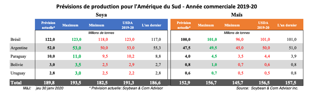 Les exportations brésiliennes de soya ont diminué de 10 millions de tonnes en 2019 en raison de la baisse de la production en 2018/19, mais la baisse des exportations de soya a été compensée par une augmentation des exportations de maïs, de viande et de coton.