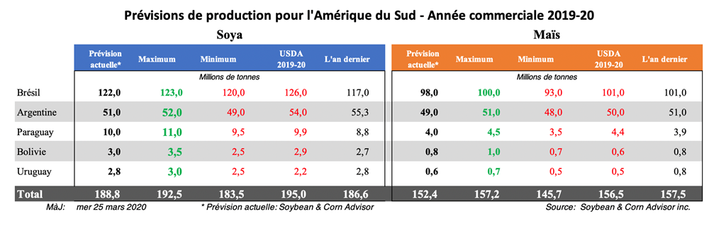 Les conditions chaudes et sèches du début mars ont eu un impact négatif sur le soya planté hâtivement, alors que la récolte était dans sa phase critique de remplissage des gousses. Les pluies récentes sont arrivées trop tard pour aider le soya hâtif, mais elles pourraient tout de même aider le soya tardif. Les agriculteurs commencent à peine leur récolte de soya.