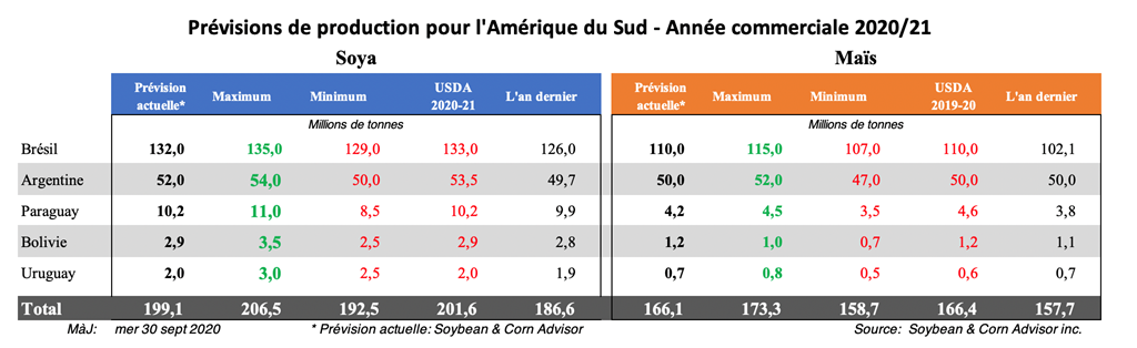 Les prix au comptant du soya au Brésil sont déjà des records et continuent d’augmenter. Pour aggraver la situation, les agriculteurs conservent leur soya de la récolte de l’année dernière qu'ils auraient pu laisser dans l'espoir d’avoir des prix encore plus élevés. Il y a des rapports d'offres aussi élevées que 12,00 $ US pour les livraisons en décembre.