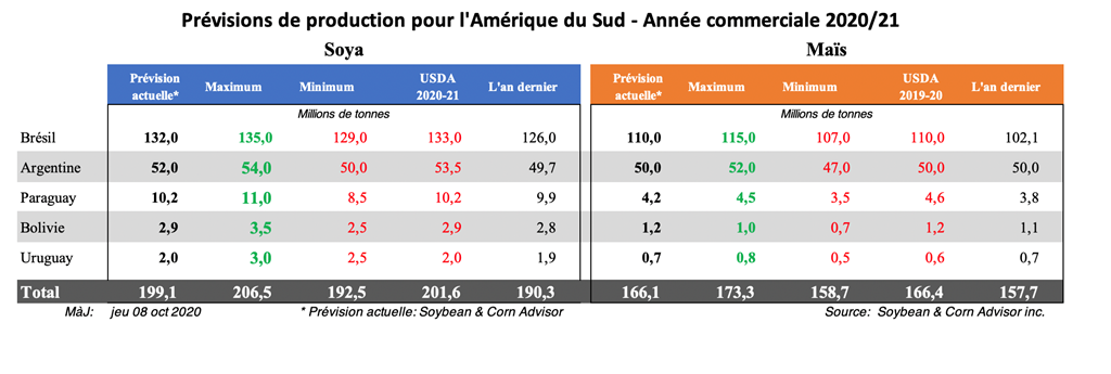 La production brésilienne de soya de 2020 est restée inchangée à 132,0 millions de tonnes et j'ai un biais neutre pour l'avenir. Même si la plantation du soya est retardée, il est trop tôt pour parler de rendements potentiels plus faibles. Il n'est cependant pas trop tôt pour parler du retard des exportations de soya hors du Brésil pour le début de l'année prochaine.