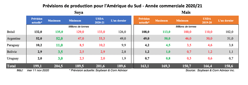 Le soya 2020/21 en Argentine a été semé à 4% à la fin de la semaine dernière, comparativement à 9% l'année dernière et à 12,6% pour la moyenne quinquennale. La plupart des semis ont eu lieu dans le centre-sud de l'Argentine, dans les provinces de Buenos Aires et de La Pampa, où l'humidité du sol est meilleure.
