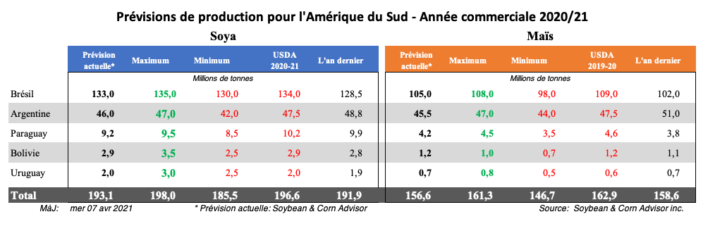 L'estimation du maïs en Argentine est restée inchangée cette semaine à 45,5 millions de tonnes, les principales menaces restantes pour la récolte étant le retour d'une période prolongée de temps sec et de dommages potentiels dus au gel.