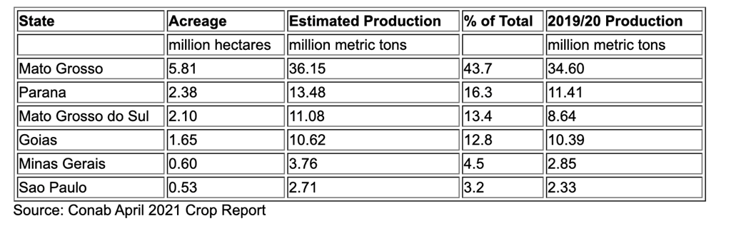 Production de maïs safrinha 2020/21