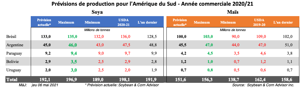 L'État du Mato Grosso est le plus gros État producteur de maïs safrinha au Brésil, représentant environ 45% de la production totale. Les précipitations ont été meilleures dans le Mato Grosso, mais les conditions de récolte sont assez variables dans l'État et les prévisions prévoient des précipitations inférieures à la normale. L'Institut d'économie agricole du Mato Grosso (Imea) a récemment abaissé son estimation du rendement du maïs safrinha à l'échelle de l'État de 102,51 sacs par hectare (97,7 boisseaux / acre) à 101,42 sacs par hectare (96,7 boisseaux / acre).