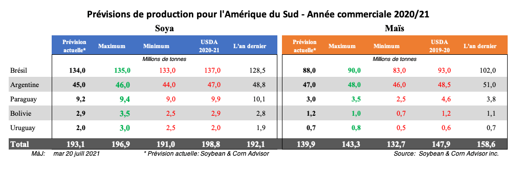 L'estimation du maïs 2020/21 au Brésil est restée inchangée cette semaine à 88,0 millions de tonnes, et j'ai un biais neutre à inférieur pour l'avenir. La récolte de maïs safrinha 2020/21 a été confrontée à des défis sans précédent, j'ai donc un niveau de confiance moindre dans l'estimation du maïs brésilien. Nous ne connaîtrons pas l’estimation de la production finale avant la récolte du dernier champ et je soupçonne qu'elle sera inférieure à l'estimation actuelle.