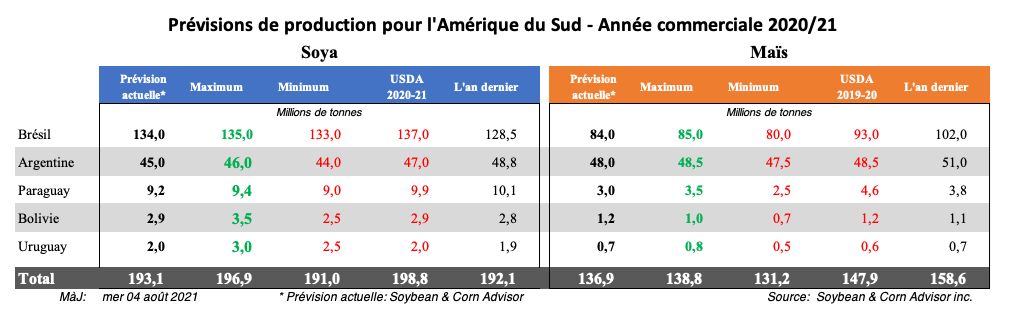 L'estimation du maïs 2020/21 au Brésil a été abaissée de 2,0 millions de tonnes à 84,0 millions et j'ai un biais neutre à inférieur à l'avenir.