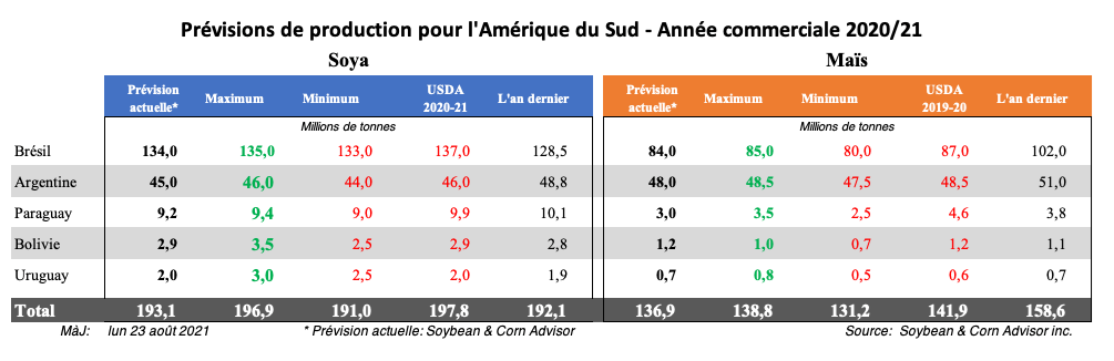 Les prix élevés du maïs devraient persister pendant au moins 6 mois en raison du déficit de maïs dans le sud du Brésil où se concentre l'industrie de l'élevage. Les déficits en maïs devraient être de 5 millions de tonnes au Paraná, 5 millions de tonnes à Rio Grande do Sul et 2 millions de tonnes à Santa Catarina, soit un total de 12 millions de tonnes qui doivent provenir d'autres États brésiliens ou d'importations. La prochaine récolte de maïs de pleine saison ne commencera au Brésil qu'en janvier.