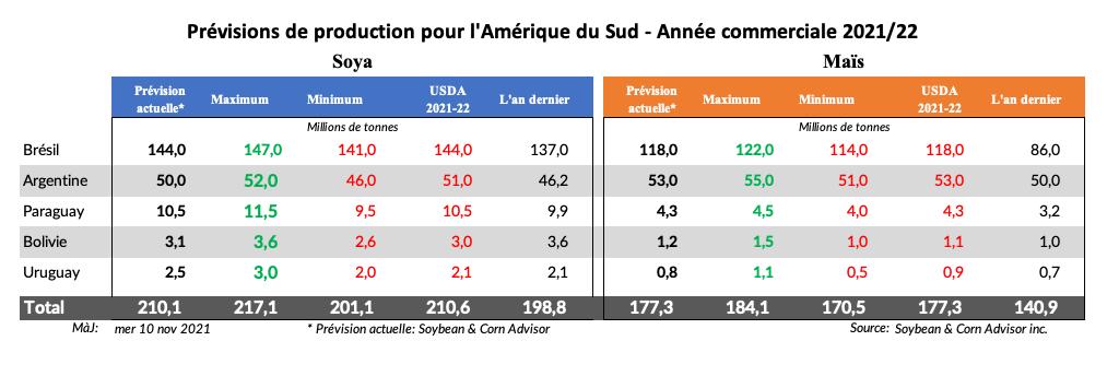La semaine dernière, les conditions météorologiques au Brésil ont été généralement favorables aux semis de soya, en particulier dans le centre et le nord-est du Brésil. Les prévisions pour cette semaine prévoient que de bonnes pluies se poursuivront dans le centre du Brésil, avec un temps sec prédominant dans le sud du Brésil. Le jour 6-10 prévoit de bonnes pluies dans le centre du Brésil avec un retour de pluie dans le sud du Brésil.