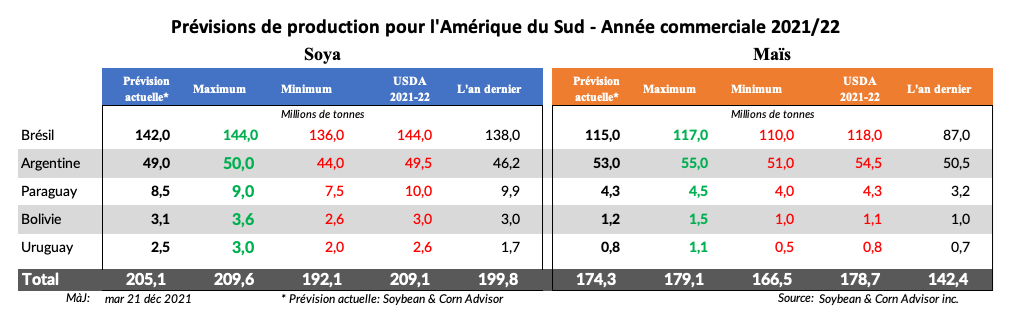 Jusqu'à présent, J'ai hésité à abaisser l'estimation du soya argentin parce que c'est au début de la saison de croissance et que la récolte se porte bien. Les conditions peuvent maintenant changer. Le temps devient plus chaud et plus sec. 3 % de la récolte est maintenant en fleurs et le pourcentage de la récolte est jugée «bonne/excellente» était de 75 % la semaine dernière, en baisse de 13 points par rapport à la semaine précédente. C'est une grosse baisse pour une semaine, donc le mauvais temps tant attendu résultant de La Nina, peut maintenant commencer à se manifester.