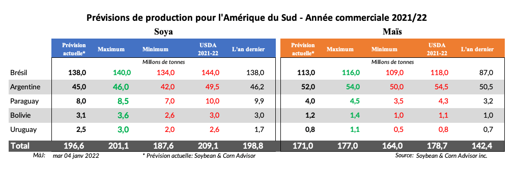 L'estimation du soya Argentine 2021/22 a été abaissée de 3,0 millions de tonnes cette semaine à 45,0 millions de tonnes.