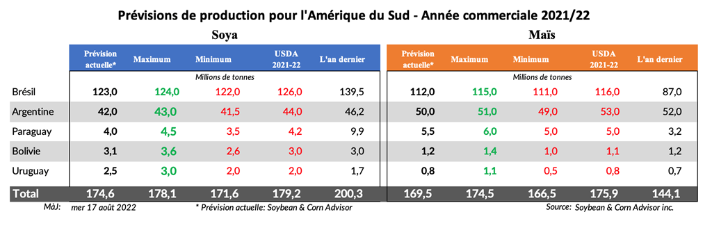 Les estimations 2022/23 pour le soya et le maïs en Argentine sont les suivantes :