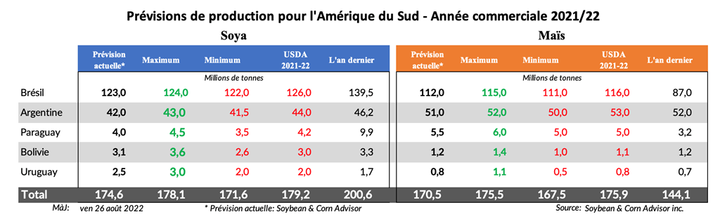 Les agriculteurs brésiliens terminent la récolte de leur maïs safrinha 2021/22 et commencent à semer leur première récolte de maïs 2022/23. À la fin de la semaine dernière, les agriculteurs brésiliens avaient récolté 90 % de leur maïs safrinha. Au centre du Brésil, la récolte du maïs safrinha est terminée dans les États du Mato Grosso et de Goiás. Selon le Département de l'économie rurale (Deral), dans le sud du Brésil, la récolte de maïs safrinha au Paraná était achevée à 84 % en début de semaine.