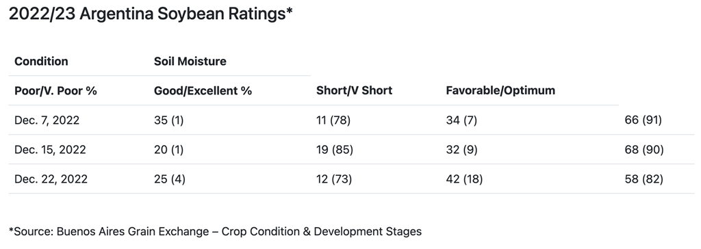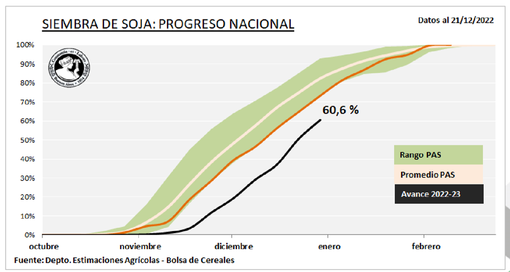 Vous trouverez ci-dessous l'évaluation de l'état du soya en Argentine par la bourse des grains de Buenos Aires pour le 22 décembre 2022.