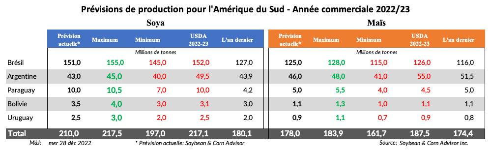 Le manque d'humidité du sol au début de la semaine dernière a ralenti les semis de soya. Mercredi dernier (21 décembre) était le jour le plus long de l'année dans l'hémisphère sud et le soya en Argentine n'était semé qu'à 60 %. Étant donné que le soya est photopériodique, les derniers 40 % des cultures de soya vont émerger lorsque les jours raccourcissent. Cela déclenchera la floraison du soya plus tôt que la normale, ce qui entraînera probablement une baisse des rendements.