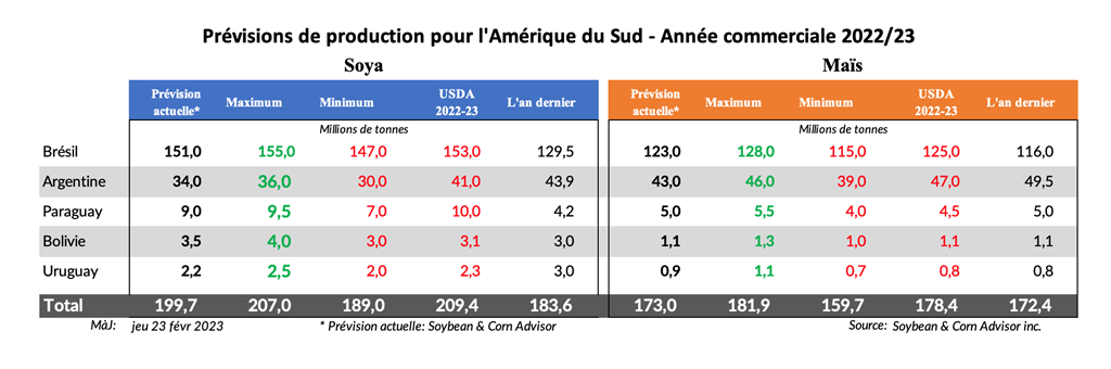 L’Imea a indiqué que si sa projection de rendement de maïs à l'échelle de l'État 2022/23 de 104,2 sacs par hectare (99,4 bu / ac) doit être atteinte, 80% du maïs safrinha devra être semé d'ici la fin février. Les techniciens de l'Imea estiment désormais que 69% du maïs safrinha sera semé d'ici la fin février. Plus le maïs est semé tardivement, plus le risque que la culture manque d'humidité avant d'avoir une chance de mûrir est grand.
