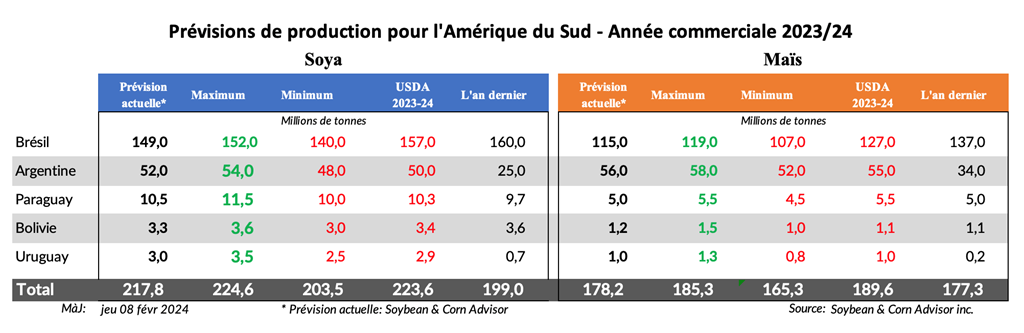 Conab et WASDE publieront leurs rapports de récolte de février le jeudi 8 février. Pour Conab, ce sera le premier rapport dans lequel ils estiment la production de maïs safrinha 2023/24 sur la base d'observations sur le terrain.