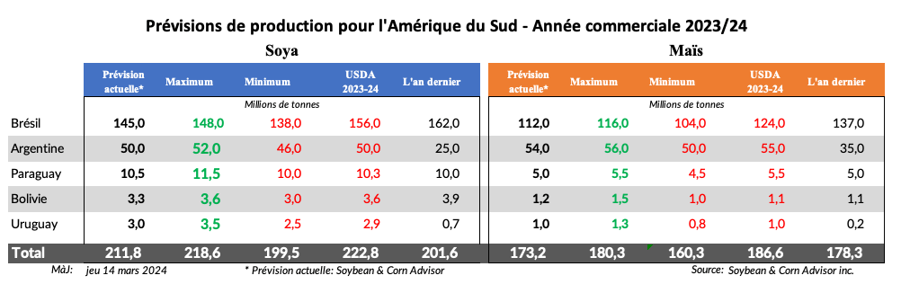 Les agriculteurs brésiliens vendent également lentement leur production de maïs de 2023/24. Ils ont vendu 14,4% de leur production prévue de maïs safrinha, contre 18,2% l'année dernière et 34,3% pour la moyenne des 5 dernières années.