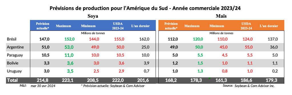 L'estimation du maïs argentin a été abaissée de 1,0 million de tonnes cette semaine à 49,0 millions de tonnes et elle pourrait encore baisser dans les rapports ultérieurs. Le maïs semé plus tardivement a été le plus touché par la maladie du rabougrissement du maïs, mais nous ne connaîtrons pas l'étendue des dégâts avant la récolte du maïs en juillet et août.