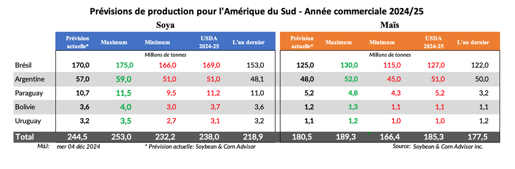 La superficie consacrée au maïs en Argentine est également incertaine. L'USDA estime la superficie de maïs à 6,4 millions d'hectares et la Bourse des grains de Buenos Aires à 6,3 millions d'hectares. J'estime la superficie à 6,0 millions d'hectares. Les précipitations et l'humidité du sol se sont améliorées et il y a moins de cicadelles du maïs que l'année dernière. En conséquence, les agriculteurs pourraient finir par semer plus de maïs que prévu et par conséquent moins de soya. Nous ne connaîtrons pas la superficie finale de soya et de maïs avant environ un mois.