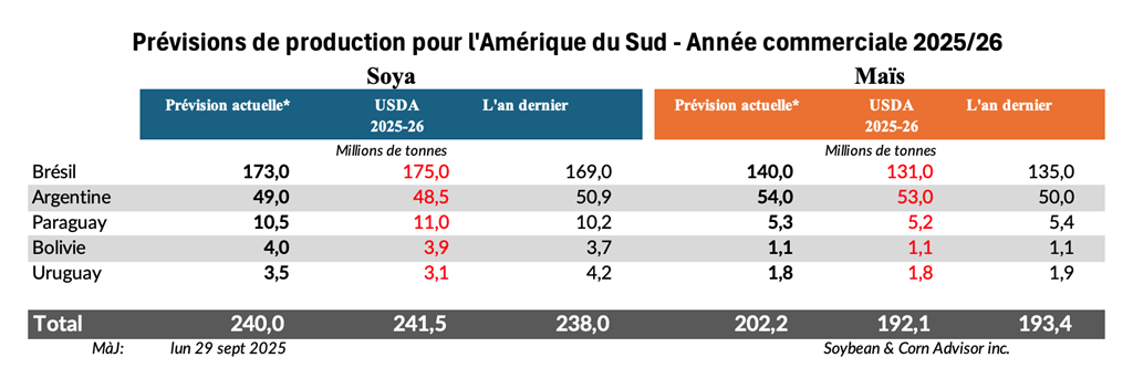• Paraguay — L’essentiel de la production de soya et de maïs se situe dans l’est et le sud du pays, où les pluies sont suffisantes pour engager activement les semis 2025/26. Les producteurs peuvent semer maïs et soya dès qu’ils jugent les conditions adéquates.