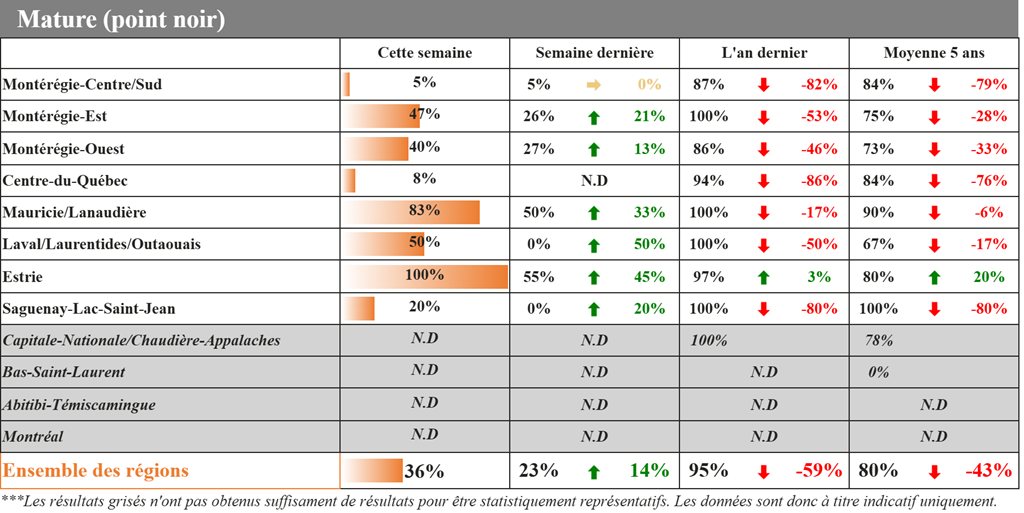 Encore une grosse semaine au champ, alors que plusieurs de nos répondants ont terminé la récolte de soya avant la pluie de mardi.