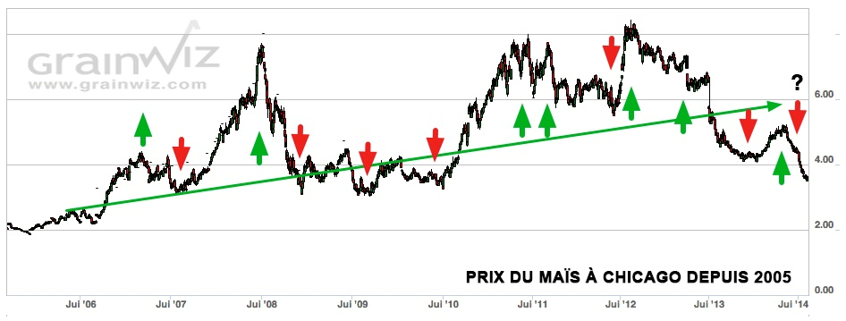 À preuve, comme le montre bien les graphiques ci-joints, le record historique du maïs a par exemple été atteint à l’été 2012, avec de premiers sommets en 2008 puis en 2011.