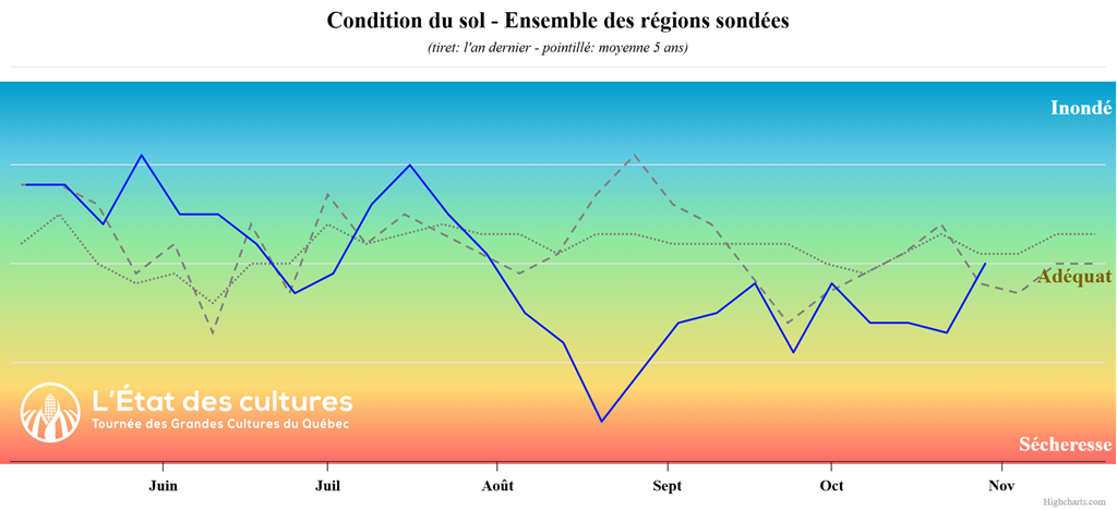 « Enfin de l’eau! » C’est probablement ce qu’on peut entendre cette semaine dans les champs de blé d’automne si on tend bien l’oreille! Pour les autres cultures, c’est plutôt une pluie qui tombe trop tard pour être utile, et qui met sur pause les travaux aux champs. Une bonne occasion pour réparer, planifier la suite, ou simplement souffler un peu avant la fin de saison.