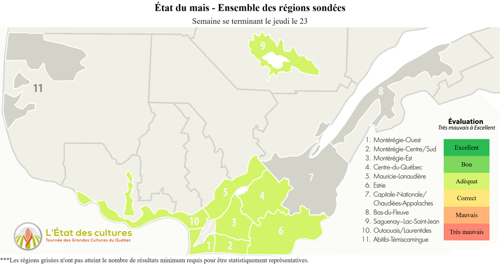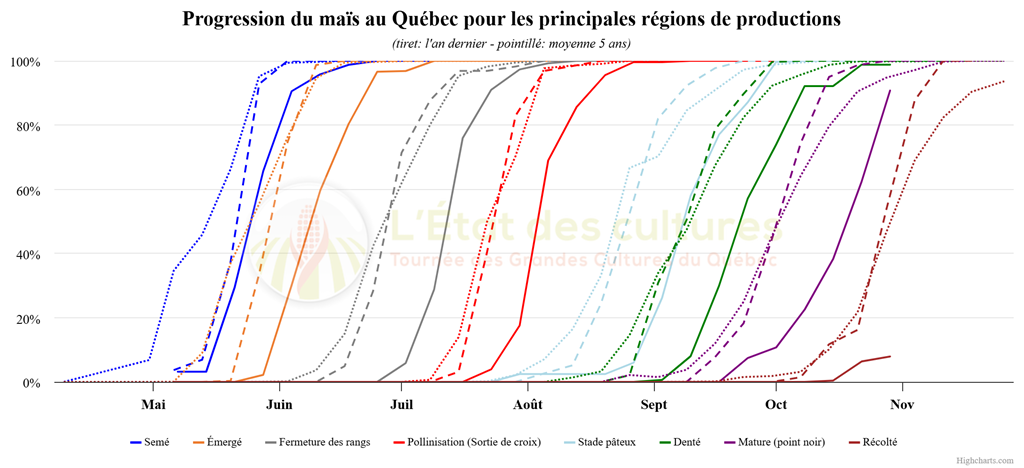 «Les récoltes de maïs ont à peine débuté dans notre coin. On attend le soleil pour débuter ça en fin de semaine. » partage Dominique Dubuc, Ferme Dom inc., en Montérégie-Ouest.